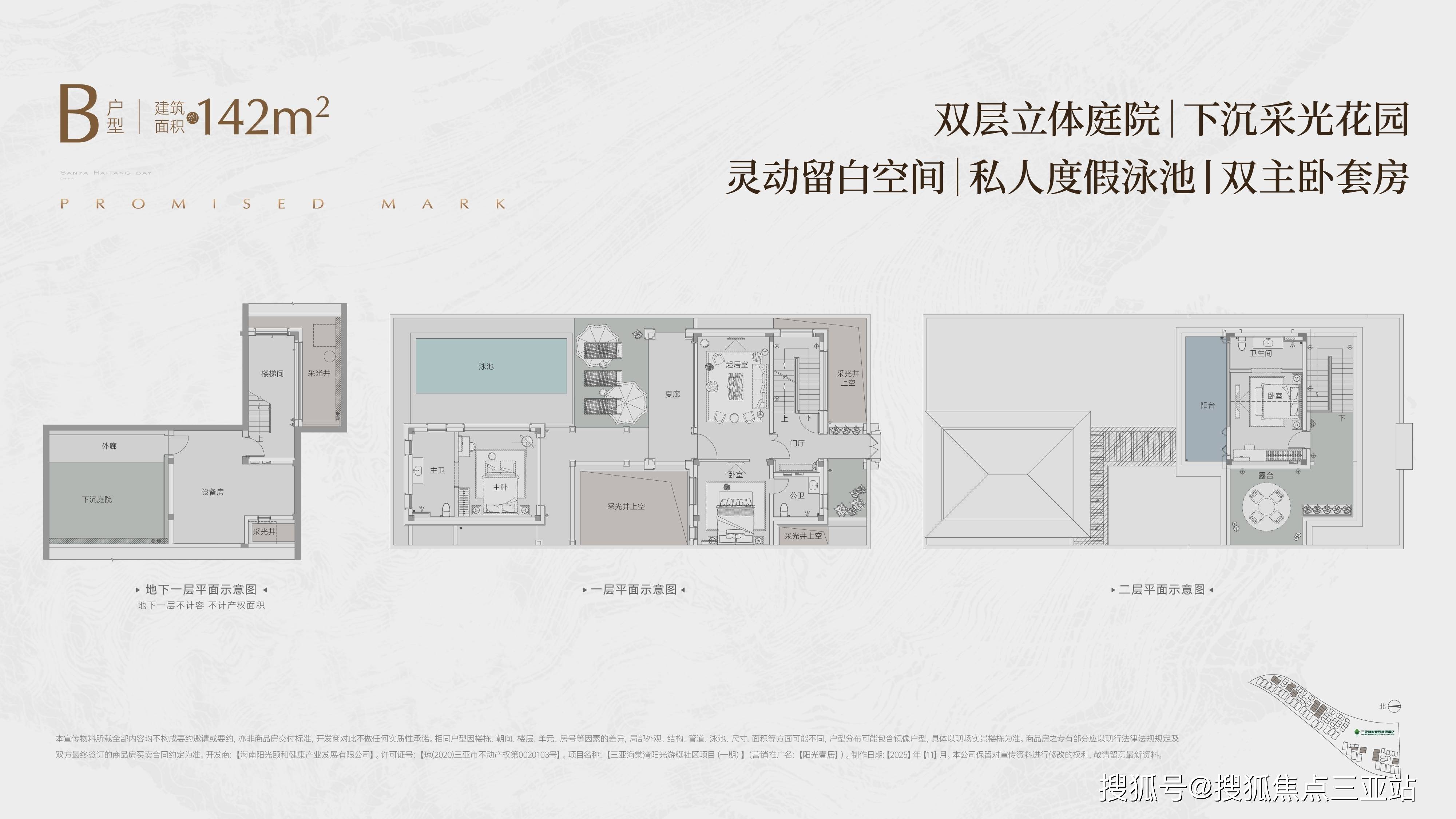 阳光壹居锚定海棠湾南醇熟留白土地,以实景现房启新选择。三重景观环,一重观山,二重赏湾,三重享私家院景。约517-1890平超大私人花园(壹玺),户户带私人泳池(除A户型外),启新家族尊崇感与多元度假体验。