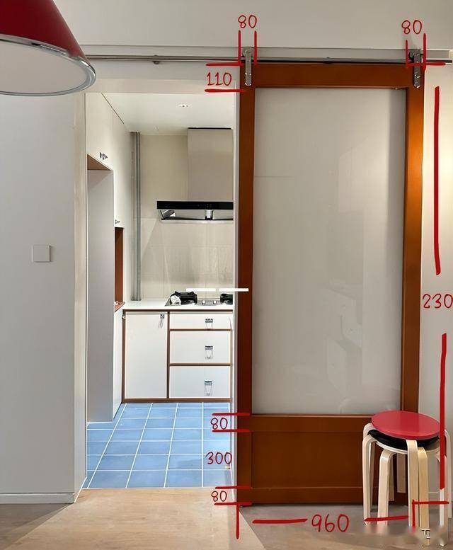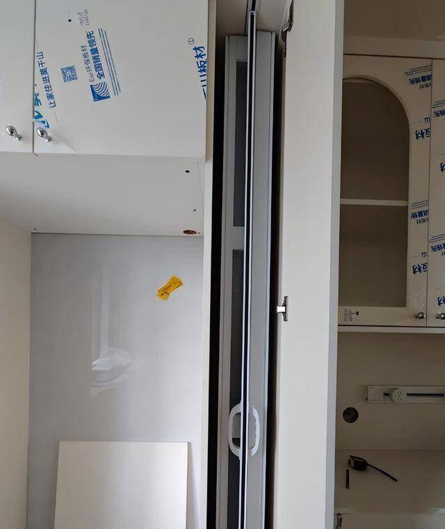 这样后期安装门的时候,就可以把门直接推进柜子里面了,再把柜门关上,根本看不出来厨房里面装了门。
