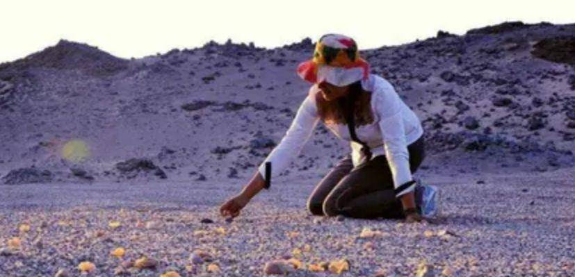 图5 更严重的是,有些人心怀歪念,他们认出了这些五彩石的真正价值——玛瑙。为了谋取利益,他们挑选出珍贵的玛瑙偷偷带走,运往自己的城市,用以改善生活。虽然单独带走几块尚可理解,但大量搬运谋利,却令人不齿。当地政府起初对此毫无察觉,民众亦无法识别这些石头的真正价值,这种行为才得以猖獗。 图6 渐渐地,游客数量减少,但带着鉴别人才的商人却越来越多。他们辨认出玛瑙后,将其装进背包甚至用卡车夜间运走,导致戈壁滩上的五彩石越来越少。幸运的是,随着事态发展,政府终于派来专家鉴定,确认这些五彩石中确有大量玛瑙。