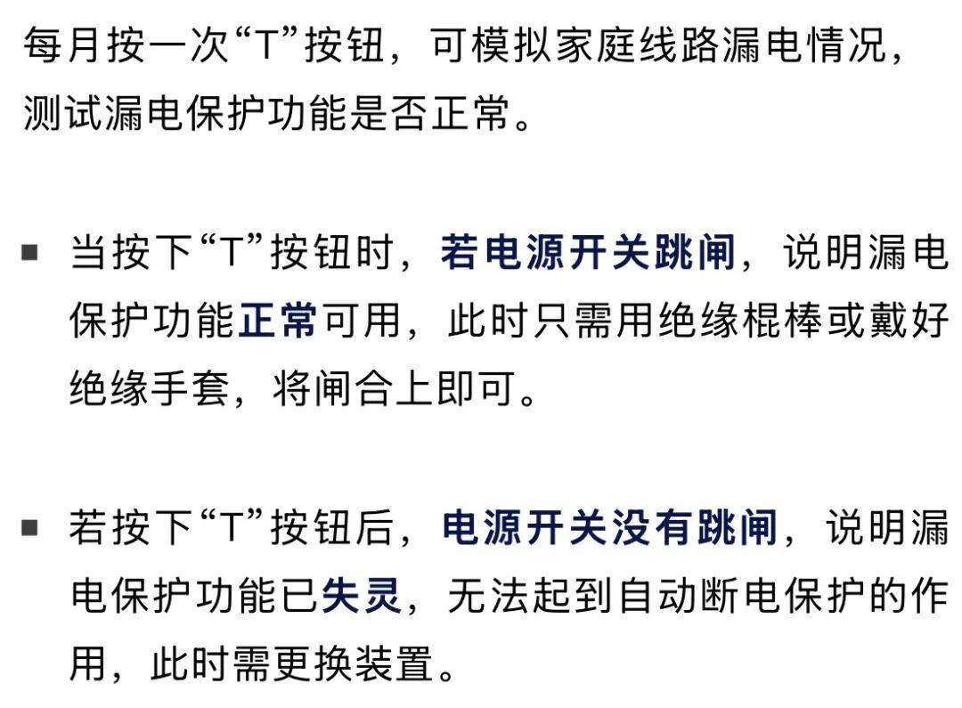 漏电保护开关上通常有一个“T”按钮,上面标有“每月按一次”的字样,这个按钮虽不起眼,却是确保漏电保护开关正常工作的关键。