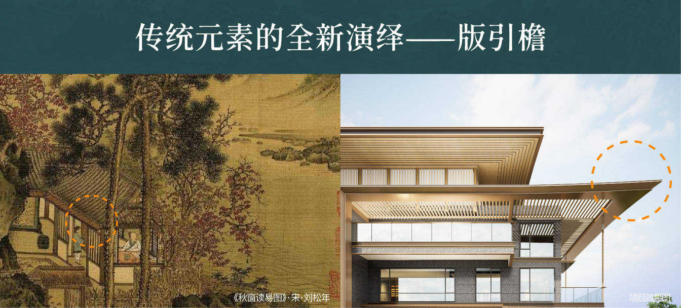 以宋代生活为模板,通过云顶飞檐、版引檐、擗帘杆、挂䈋、寻杖、平坐等中式建筑元素的现代演绎,实现功能与美学的平衡。