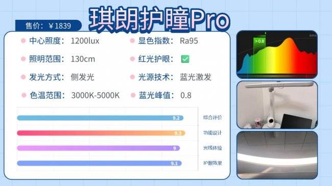 琪朗护瞳Pro采用侧发光设计,并配合上内部防眩结构,可以减少光线直视刺眼的现象。同时,它也是采用了背导光结构,补充了墙面等环境光,可以避免敏感差异大而造成的视觉伤害。它整体满足国AA级标准,可覆盖约130cm的桌面,光线柔和且亮度充足。