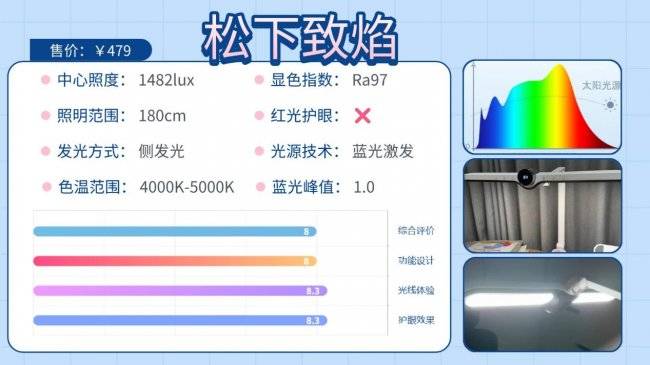 · 光谱要科学:优选采用“紫光激发”等技术的,做到低有害蓝光、补充有益红光,光线柔和连续。