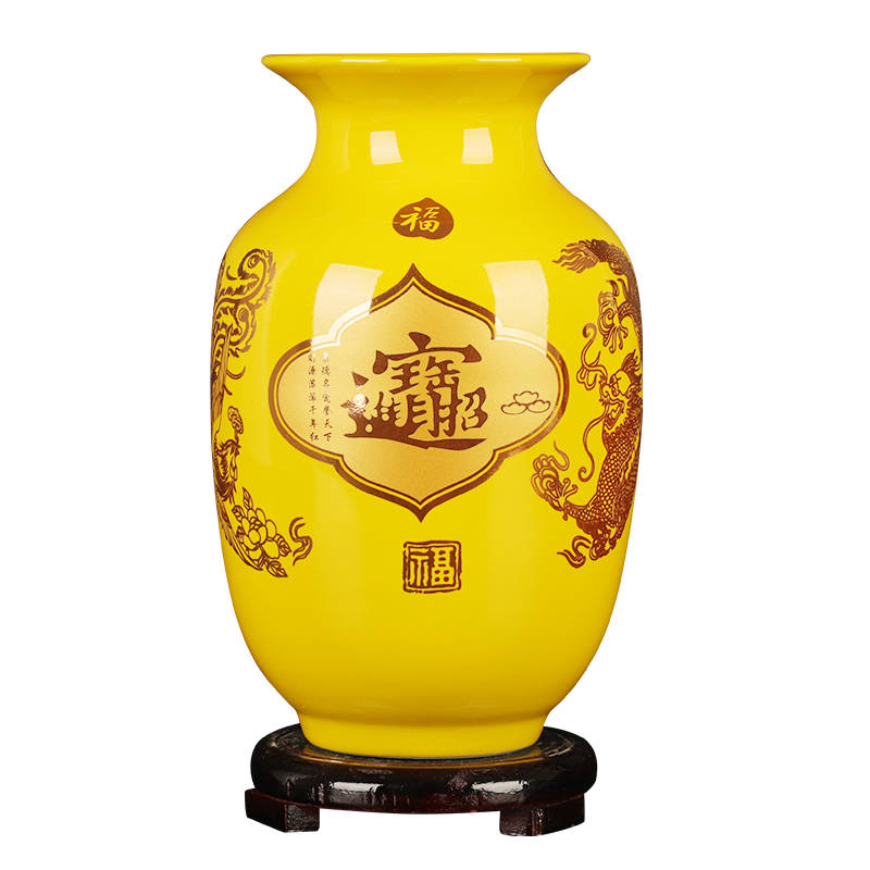 摆放招财图案的陶瓷花瓶,或用黄色纯色陶瓷花瓶搭配小金元宝摆件,可助力事业财运。