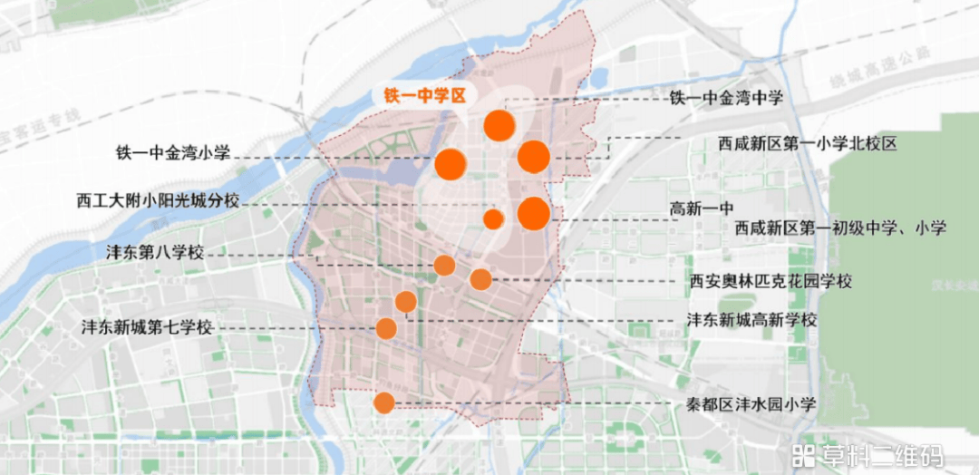 ⊙ 教育兑现丨四大名校落地(除交大)。铁一中、高新系等17所学校分布,2024年提供学位突破3万个。