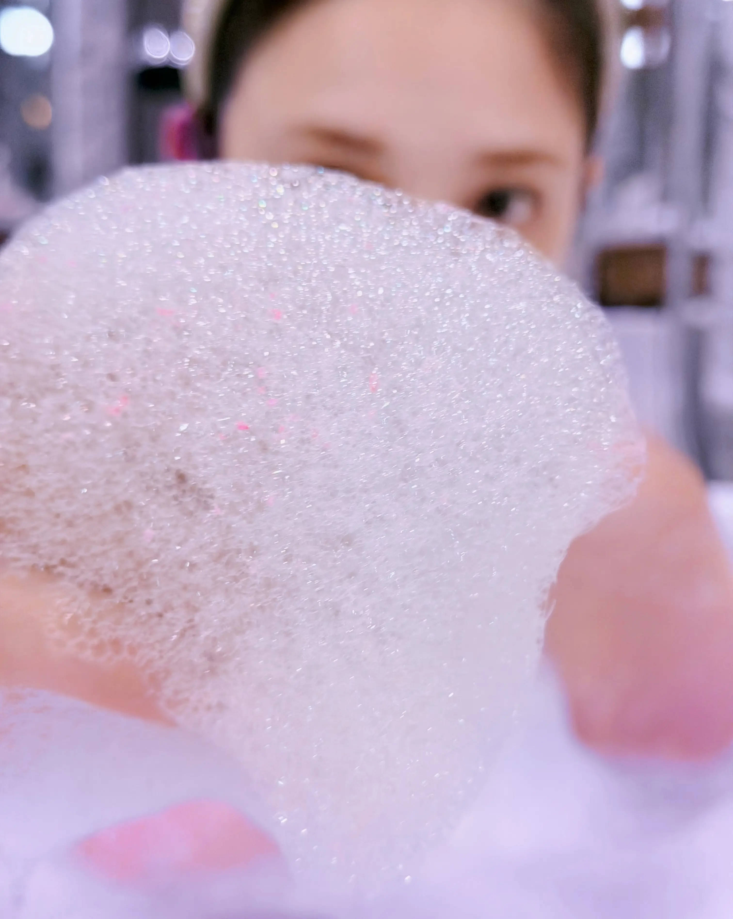 彭小苒玩泡泡表情灵动。