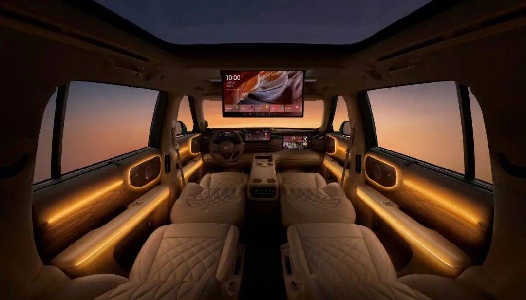 最舒服的是座椅配置,全车三把零重力座椅,支持贵妃椅模式和超级大床模式。长途开车的时候,副驾和二排的人可以调成零重力模式,躺着休息,跟家里的沙发一样舒服;孩子累了可以躺平睡觉,老人也能放松腿脚。