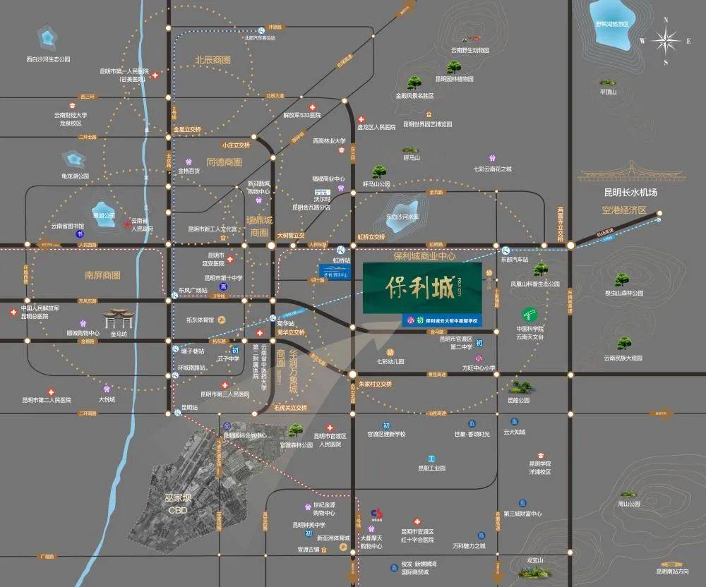 项目周边交通路网四通八达,形成“三横四纵”的立体交通格局。人民东路、东风东路等城市主干道贯穿东西,连接城市繁华商圈;东三环、东绕城高速等交通要道纵横南北,快速串联昆明长水国际机场、昆明高铁站等重要交通枢纽。地铁3号线虹桥站与项目紧密相连,规划中的地铁线路也在此交汇,高效便捷的轨道交通,让您轻松融入城市繁华脉络,无论是日常通勤、商务出行,还是休闲出游,都能快速畅达,从容掌控城市生活节奏。随着城市的不断发展,保利城所在区域的价值也将持续攀升,成为城市精英争相入驻的理想之地。