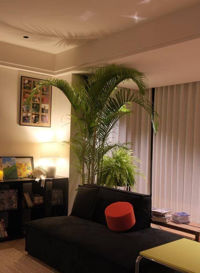 男子去掉包装后,放在靠南阳台位置,当灯光垂下来的时候,已经有了上面的绿色森林。看到这些,好多网友纷纷出主意,希望能把散尾葵放在合适的位置,让室内看上去更美。