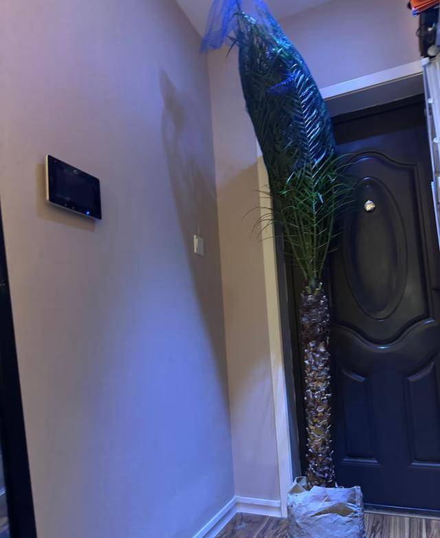 看下面这个,就是刚搬回家,也就是被网友们称为“承重墙树”的植物。它的名字是散尾葵,是一种热带常见的观叶植物。