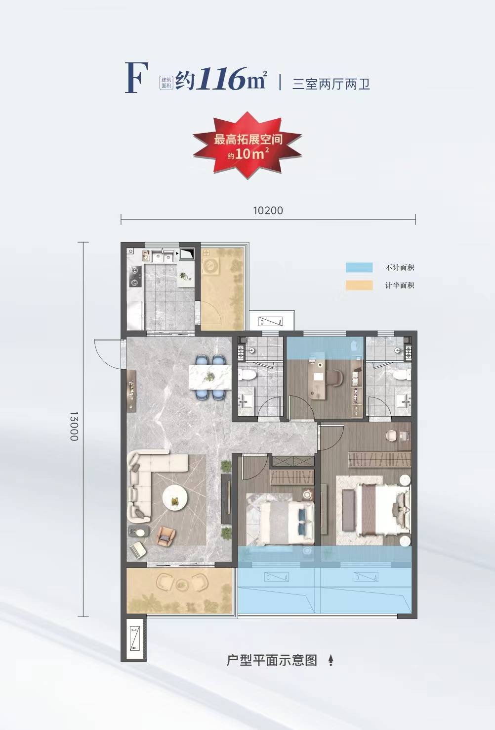 高拓空间:创新拓展空间,赠送面积高达8~10㎡,空间使用率更高;