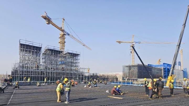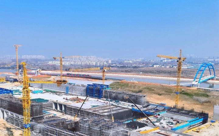 在淮安枢纽施工现场,满眼都是奋勇实干的忙碌图景:15孔老地涵北侧,30孔新地涵扩建有序实施;未来横跨京杭运河两岸的交通桥,其主塔已清晰显现;地涵工区起重机、装载车的轰鸣打破了乡村的静谧。200多名施工人员穿梭在工地各个区域,迎着寒风坚守岗位、默默耕耘,他们用脚步丈量责任与担当,用双手绑扎这座未来的世界最大水立交的“筋骨”,向着2026年5月底淮安枢纽工程具备应急行洪条件、京杭运河恢复原航道通航的既定目标,稳步迈进、奋力冲刺。截至目前,淮安枢纽累计完成投资7.1亿元,占批复投资的41%。