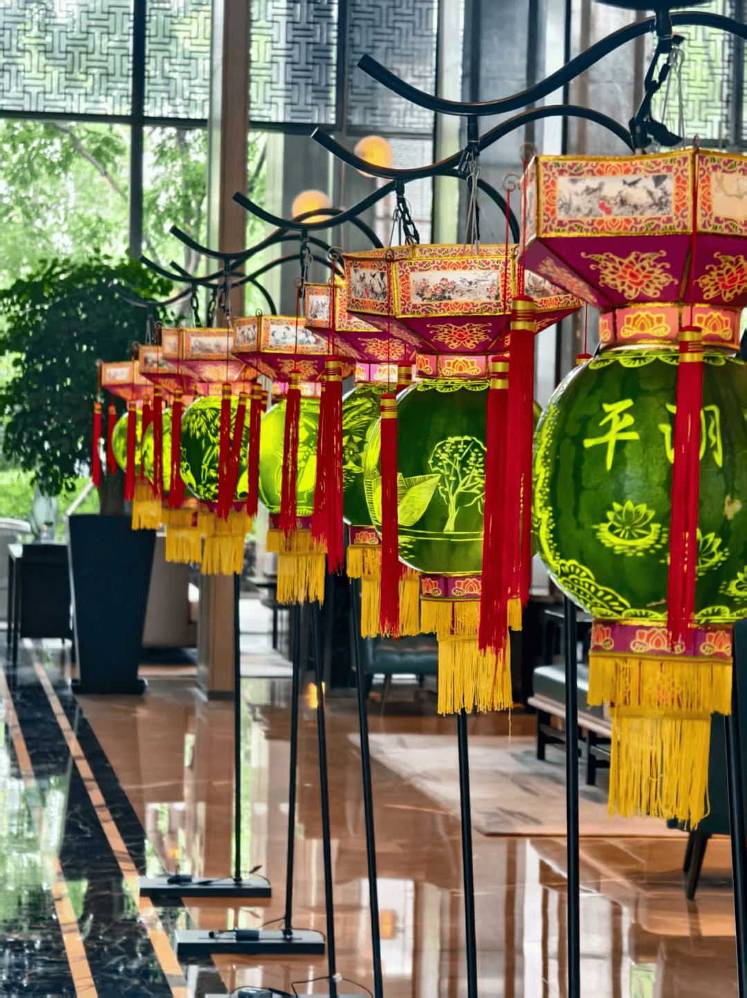 有一个镜头,在那儿,快看,我们把西瓜灯带上了春晚!