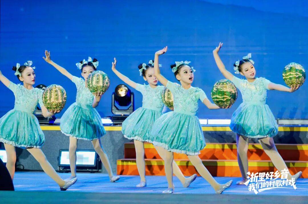 次日演出,当旋律响起,一群身着青绿短裙的孩子跃上舞台。她们手捧点点发光的西瓜灯,随着音乐轻盈跑动、雀跃转身,在节奏变换中将西瓜灯齐齐举高。每一次走位都准确无误,每一个动作都生机盎然。