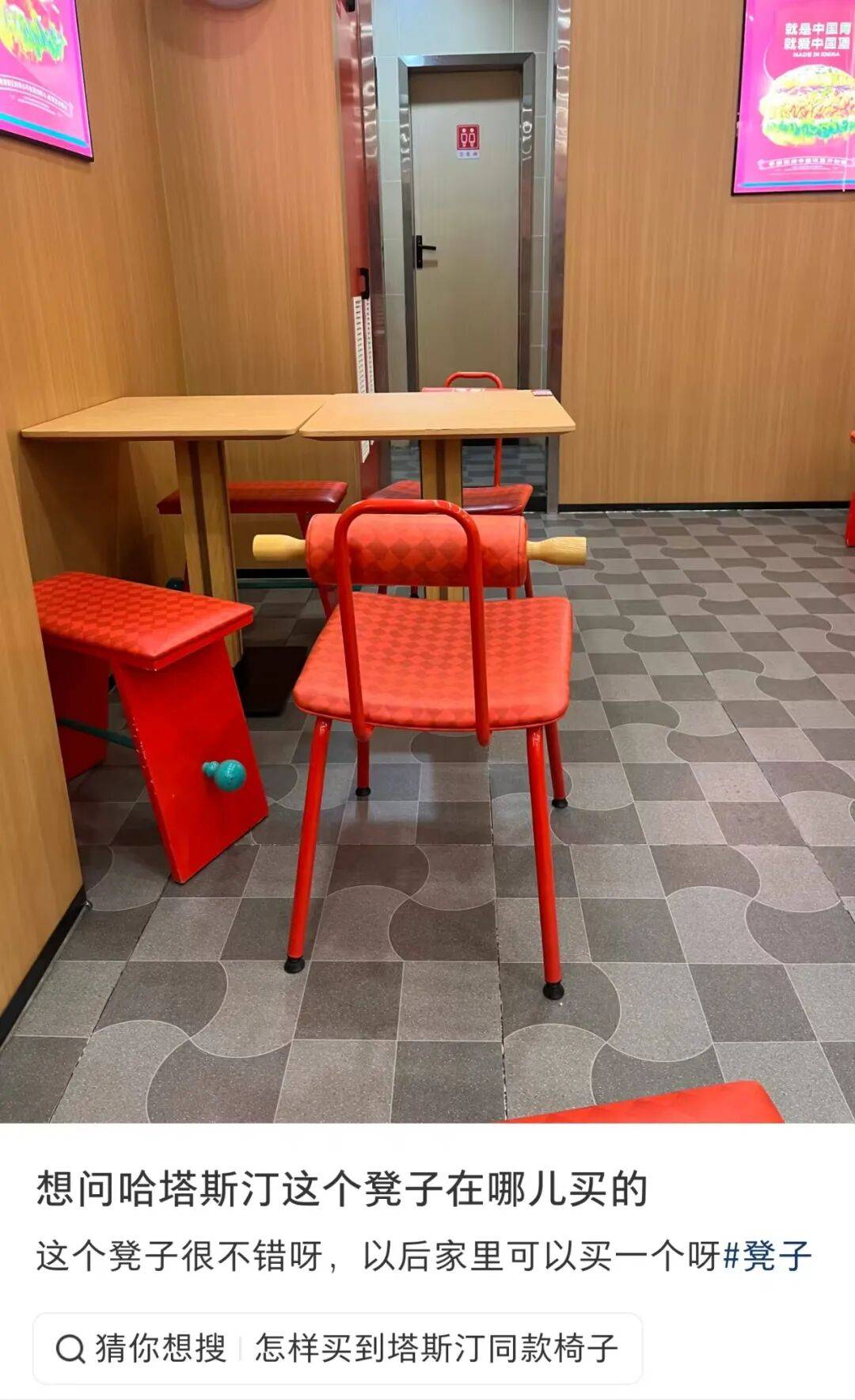又比如那天,楼下新开张的塔斯汀引进了全新装潢,而店里那张插着擀面杖的红凳子,竟然出人意料地托住了你一整天的疲惫。