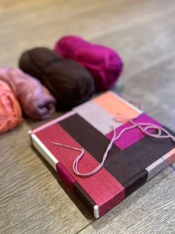 把彩绳或彩线绕在木板上,可用粗一点的针或钩针辅助穿上线再穿插出图案,或剪块小纸板穿上线也能穿插。