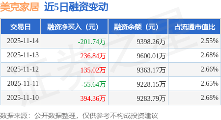 证券之星消息,11月14日,美克家居(600337)融资买入1179.05万元,融资偿还1380.79万元,融资净卖出201.74万元,融资余额9398.26万元。