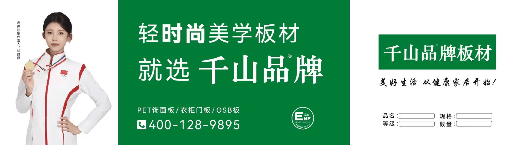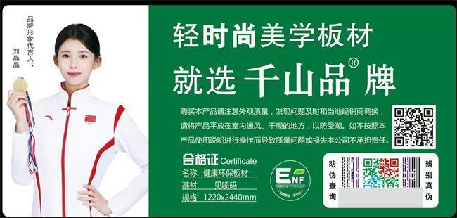 健康生活倡导者刘晶晶的代言,为品牌注入温暖活力,其阳光亲和的形象与千山品板材“健康、自然、美好” 的价值观高度契合,进一步强化品牌信任度。秉持 “美好生活从健康家居开始” 的理念,品牌始终以创新为驱动,以环保为根基,让每一块板材都成为传递美好生活的载体。无论是有老人小孩的家庭,还是追求品质生活的装修群体,都能在千山品板材的产品中,找到兼顾安全、美观与实用的家居解决方案。