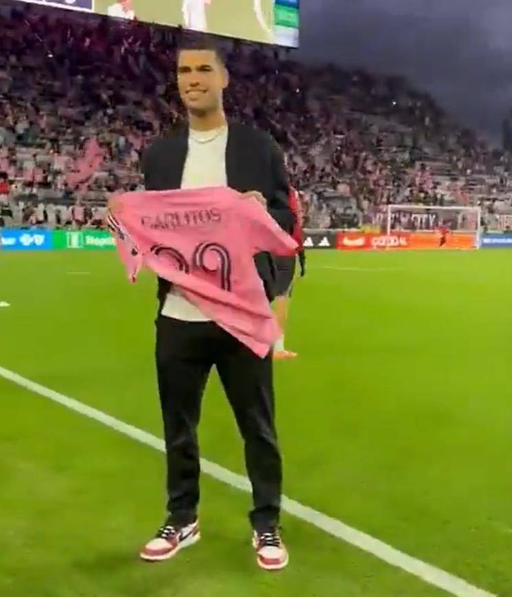 当地时间29日,迈阿密国际赢得美职联东部冠军。2025美国网球公开赛冠军阿尔卡拉斯作为嘉宾,手捧奖杯走上颁奖台,为梅西领衔的迈阿密国际颁奖。