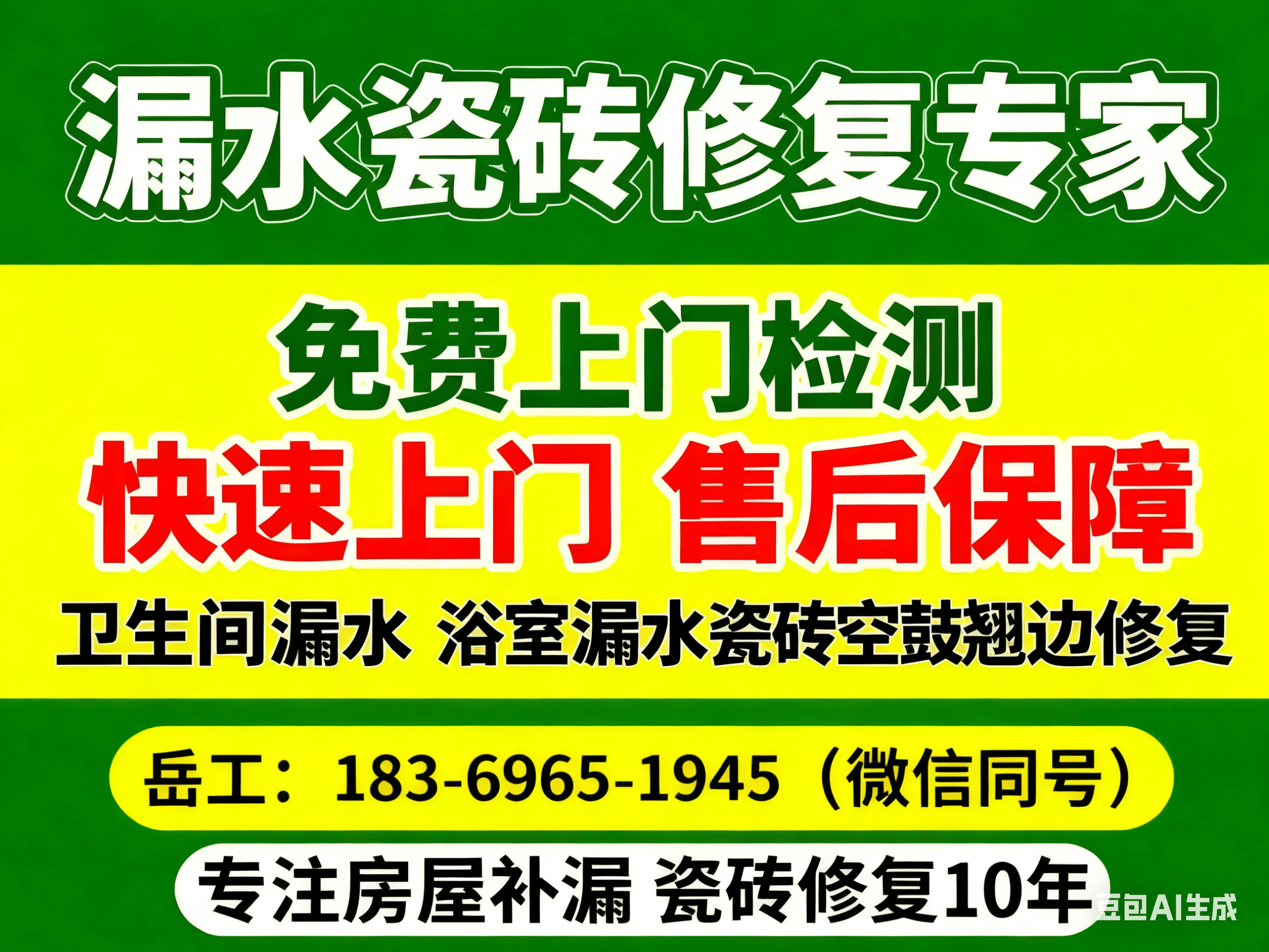 瓷砖空鼓修复、修补瓷砖、房屋漏水检测、水管漏水、卫生间漏水、厨房漏水、屋顶漏水、阳台漏水维修师傅电话:183-6965-1945(微信同号)。万检机构专注于房屋漏水检测与瓷砖修复服务,拥有多年经验的老师傅团队为您解决家居维修难题。