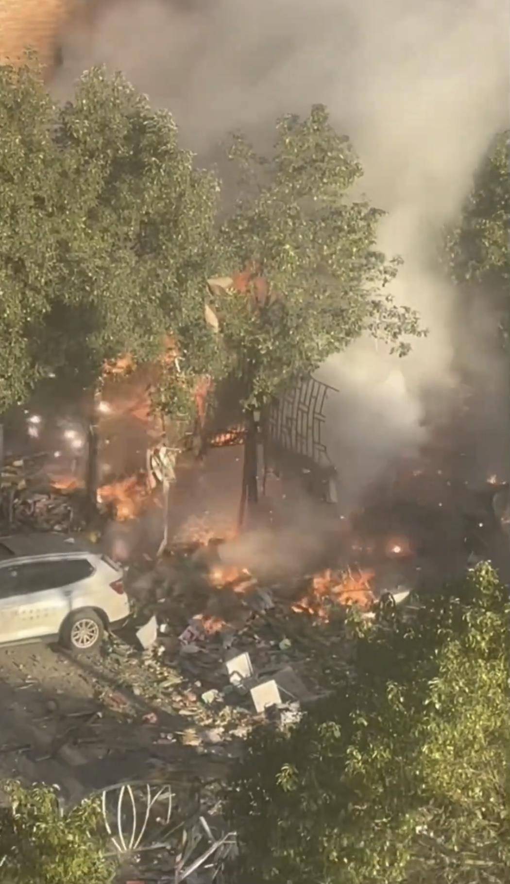 视频显示,事故现场火光冲天,浓烟滚滚。据目击者称,当时现场有一辆汽车被冲击波掀翻后抛出数米远。