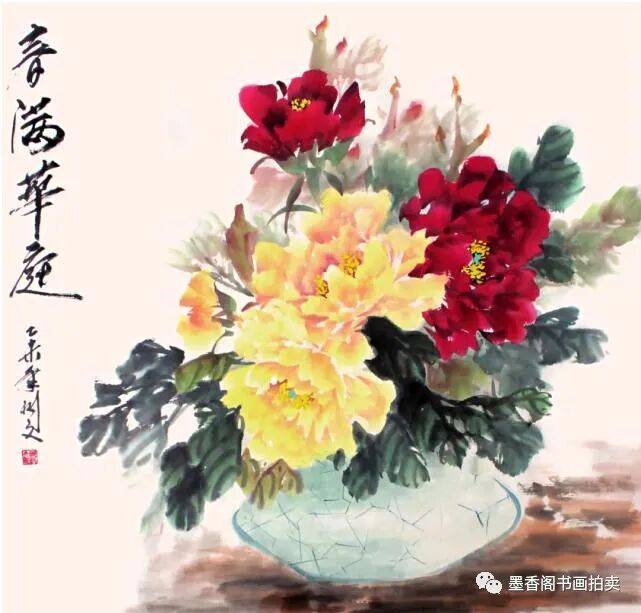 最后,再欣赏几幅名家的瓶花牡丹作品