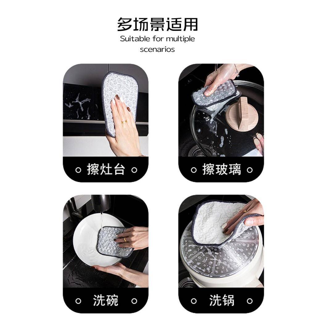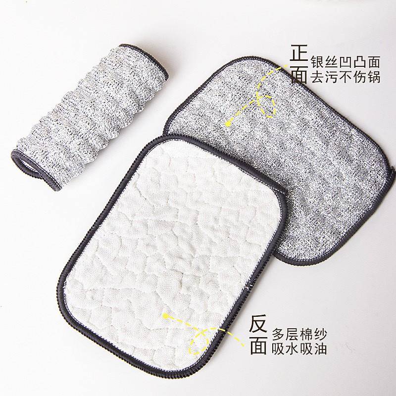 ✅ 银丝棉纱面:采用特殊编织工艺的棉纱层,纤维间隙更细密,能轻松吸附油脂而不留残渣。实测显示,其吸油量是普通抹布的3倍,且冲洗时油污更容易脱落。