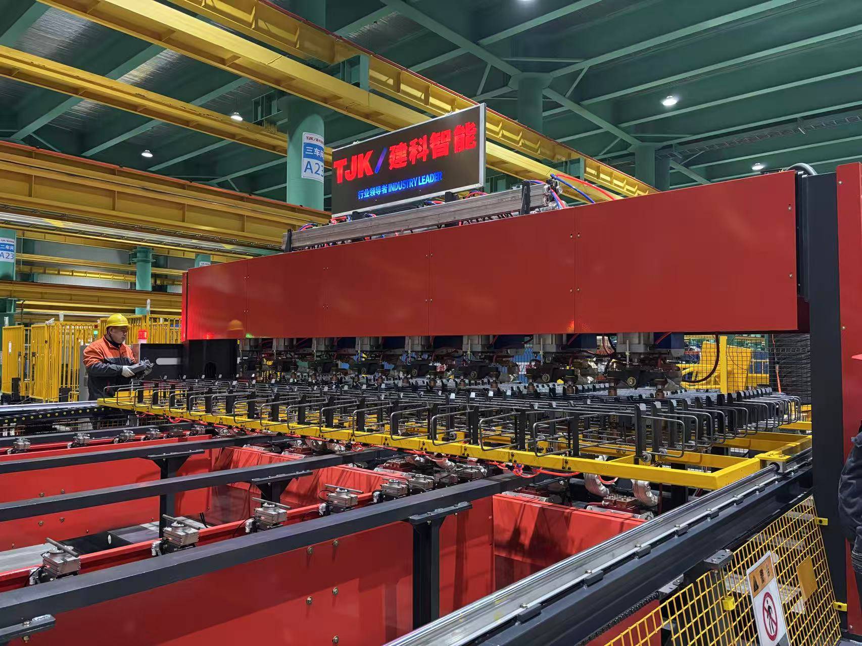 近日,建科智能举行新品发布会,推出GWCAK4000-3、BGSM50、QTGJ30三款智能钢筋加工机器人,涵盖焊接、套丝上帽、墙体钢筋笼成型三大关键环节。天津市北辰区的建科生产车间,俨然一个高效运转的“无人化工厂”——盘圆钢筋在机器中自动矫直、焊接成网;钢筋丝头精准戴上保护帽;大型墙体钢筋笼在焊花轻闪间一次成型。