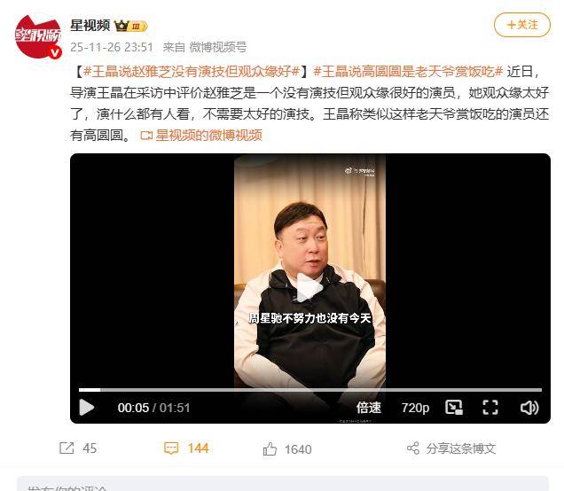 风波未平,王晶又将话题转向赵雅芝与高圆圆,这次他直接剖析起她们的演技短板。