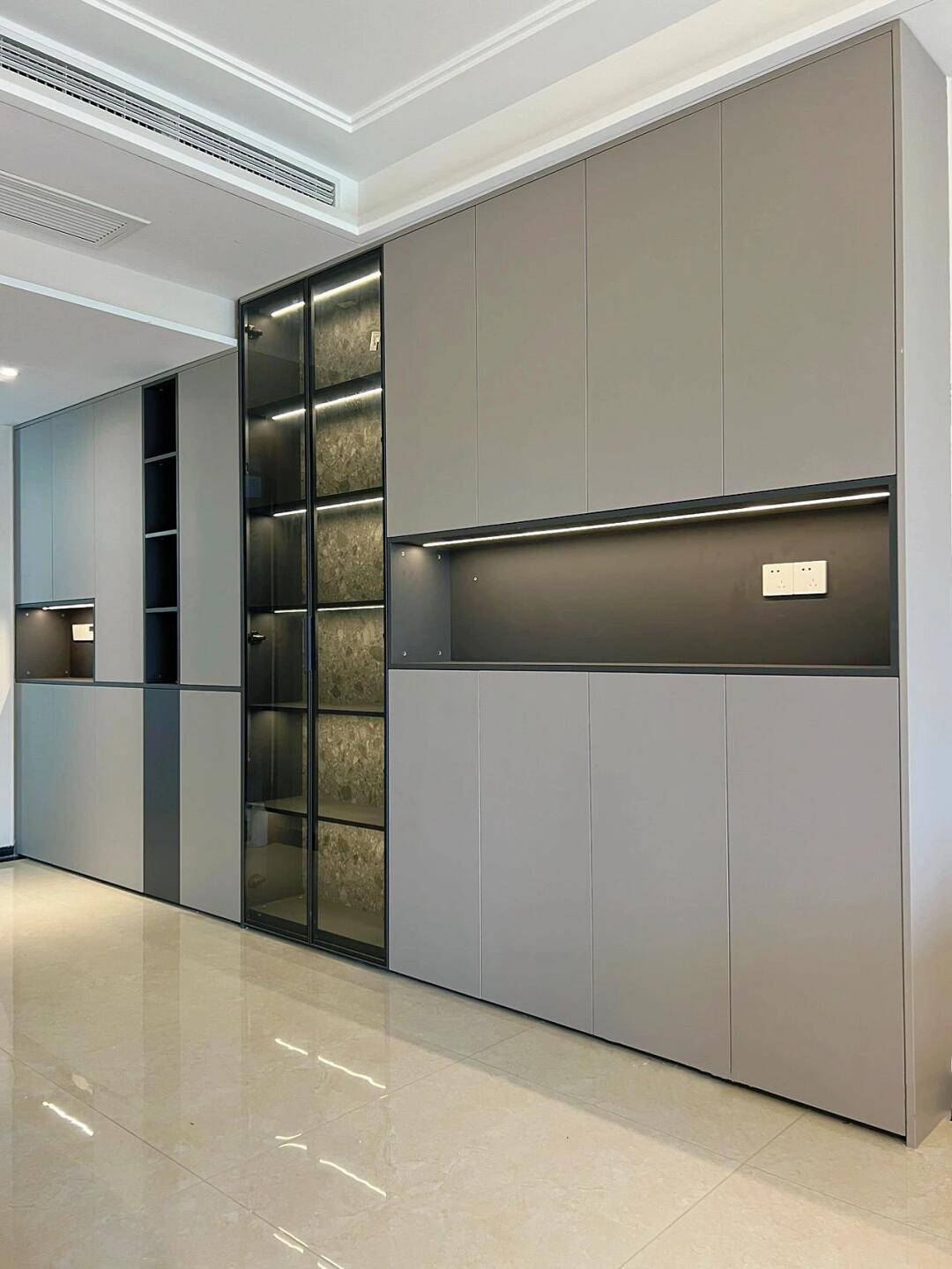 全屋定制的优势显著。首先,它能充分利用空间,对于小户型家庭来说,合理的设计可以大大增加收纳空间,解决家居物品杂乱的问题。比如,通过定制衣柜,可以根据房间的形状和尺寸,设计出多层抽屉、挂杆、隔板等不同的收纳区域,满足衣物、被褥等各种物品的存放需求。其次,全屋定制可以实现风格的统一。消费者可以根据自己家的整体装修风格,选择与之匹配的柜体颜色、材质和款式,使整个家居环境更加和谐美观。此外,全屋定制还能体现个性化需求,消费者可以参与到设计过程中,将自己的想法和创意融入到家具中,打造的家居空间。