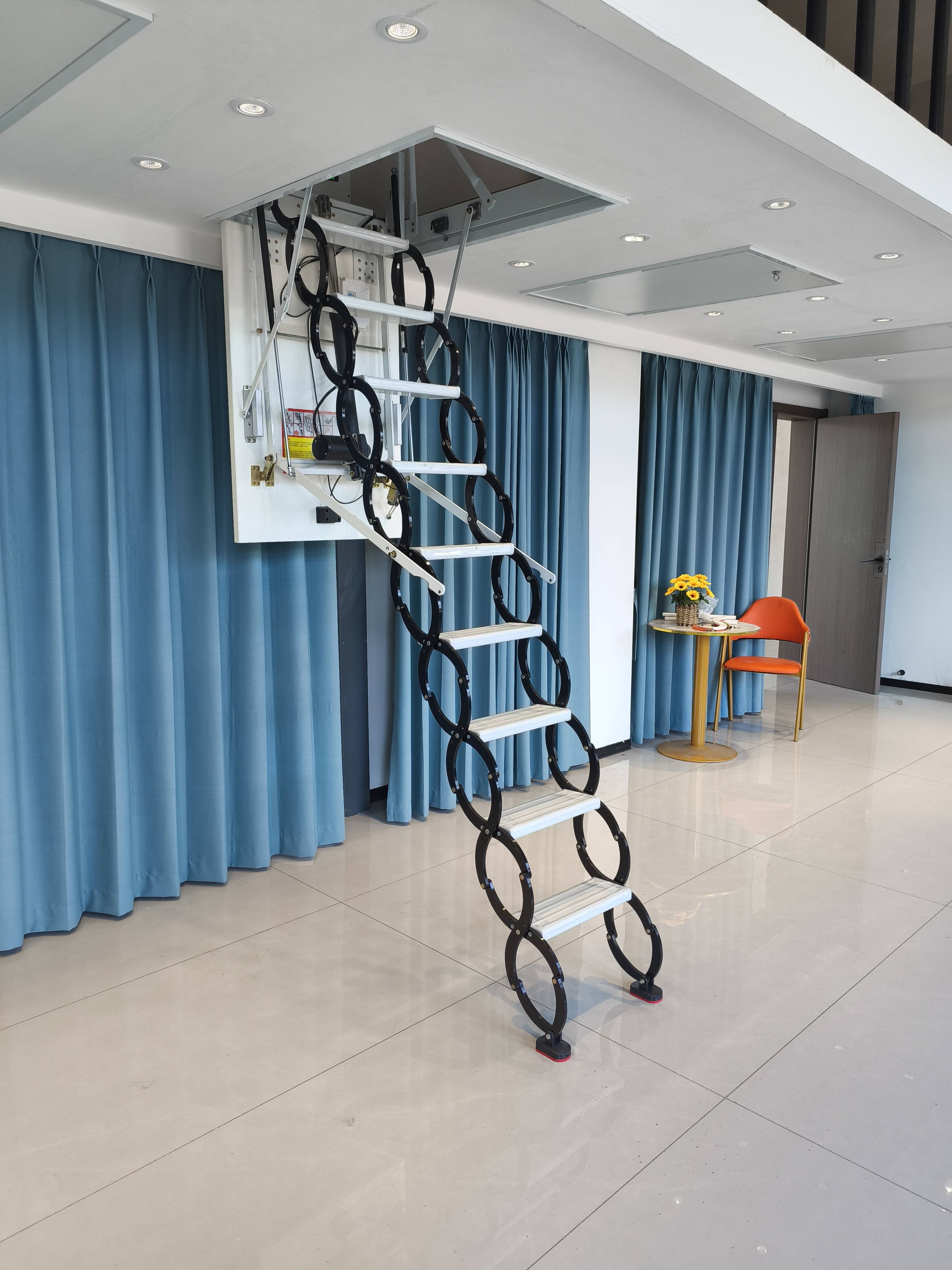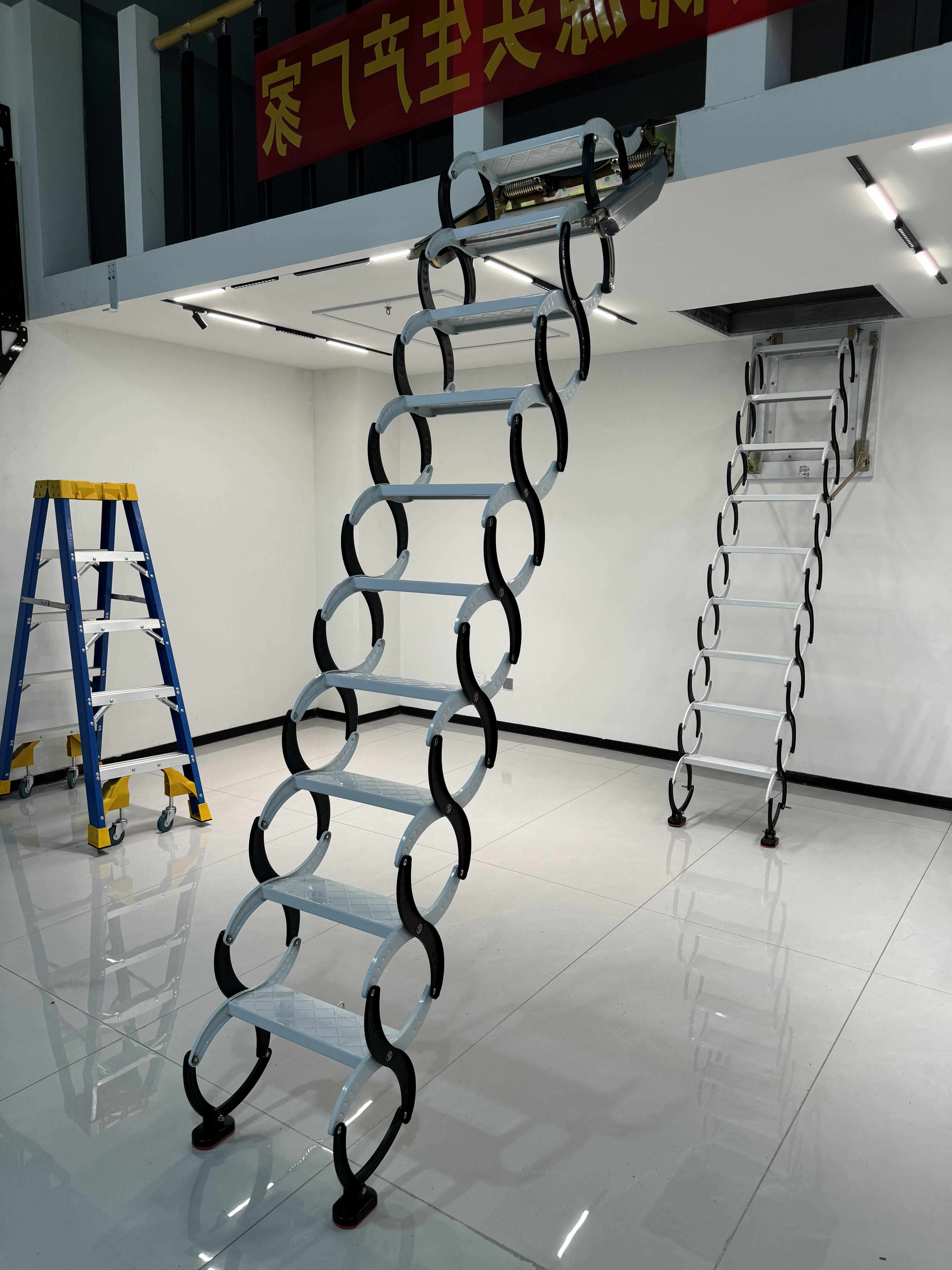 伸缩阁楼楼梯的行业优势伸缩阁楼楼梯大的优势在于其节省空间的特性。传统的固定楼梯占地面积大,对于小户型住宅或者空间有限的商业场所来说是一种奢侈。而伸缩阁楼楼梯完全收缩后仅占用阁楼洞口约1平方米空间,地面无固定结构,不会对室内布局造成过多影响。比如在一些层高2 - 3.2米的阁楼中,伸缩楼梯可以轻松打造链接阁楼上下楼的垂直空间,让原本闲置的阁楼变得实用起来。在室外,它还能代替传统的梯子,稳定性好、承重强、安全性更高,像壁挂款就方便人们上房顶。