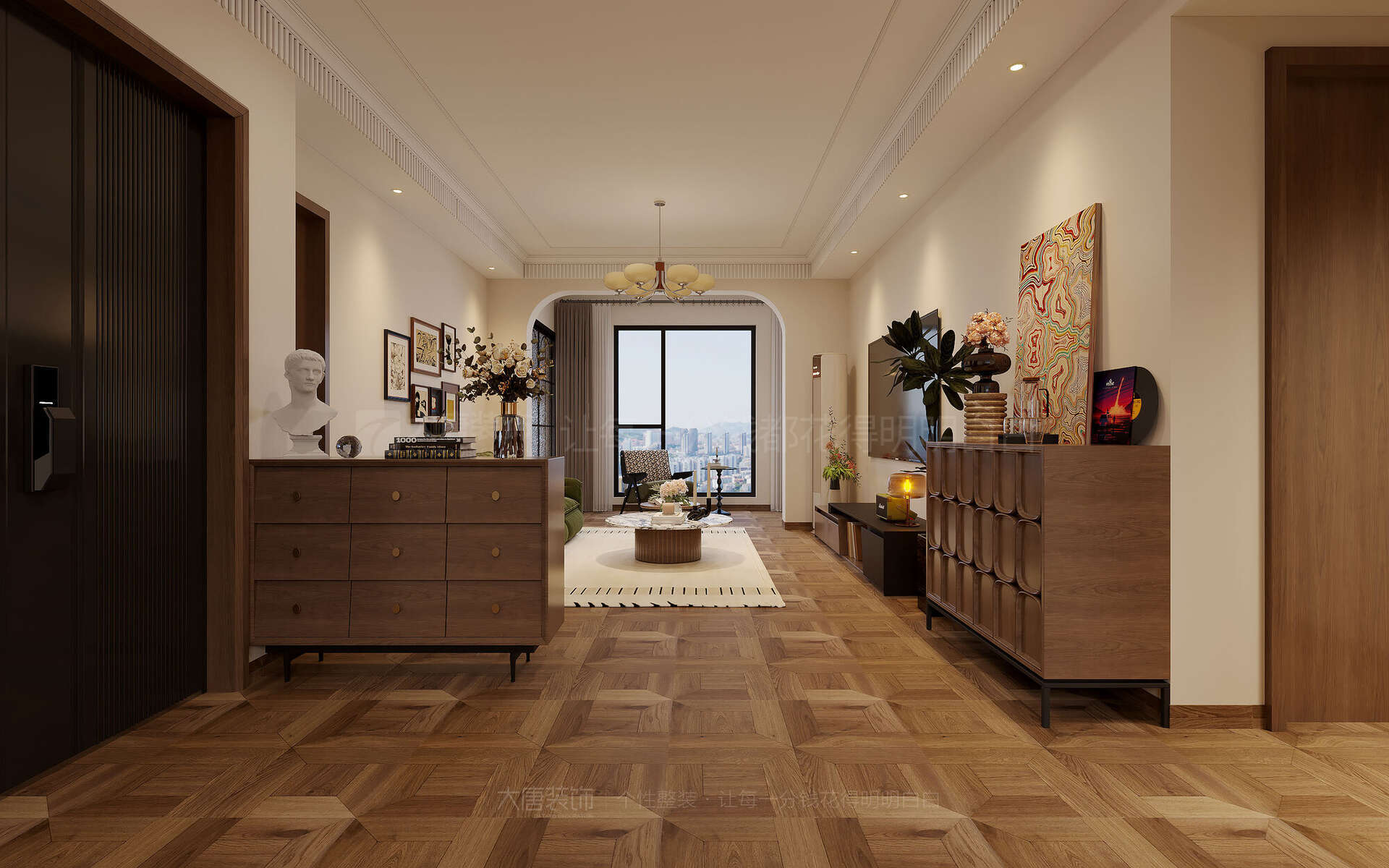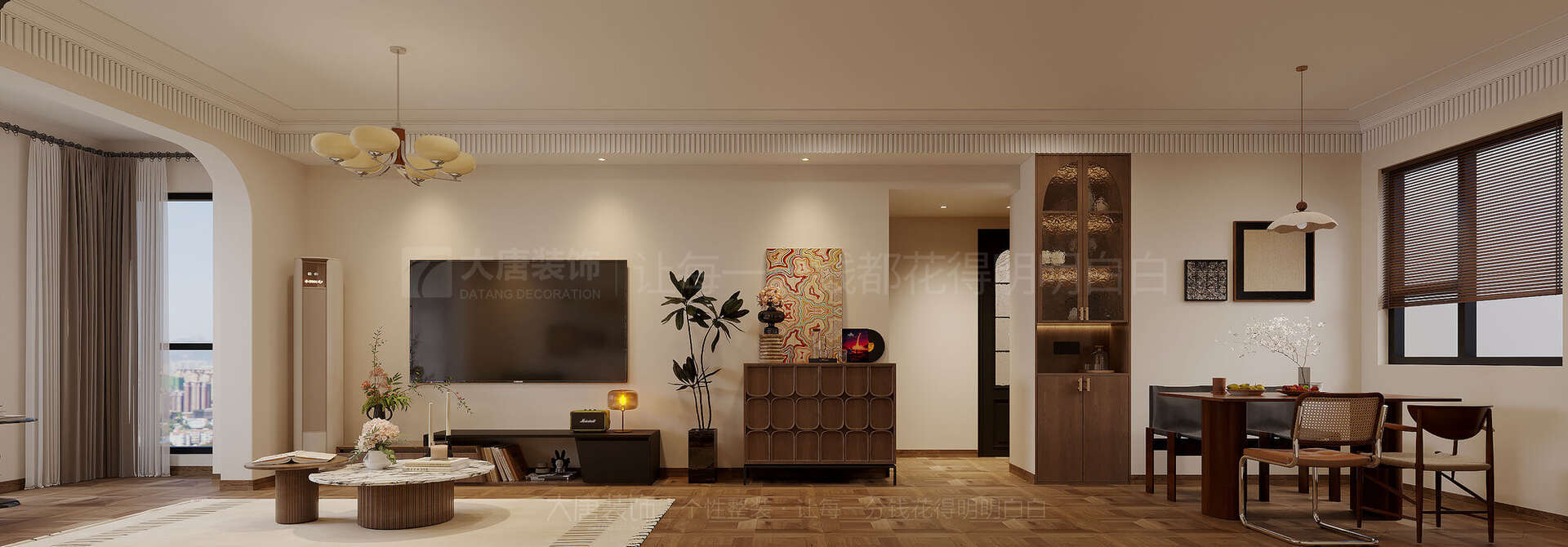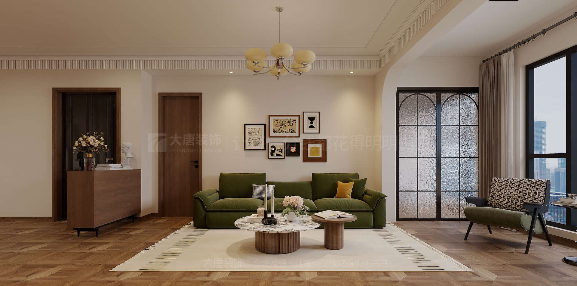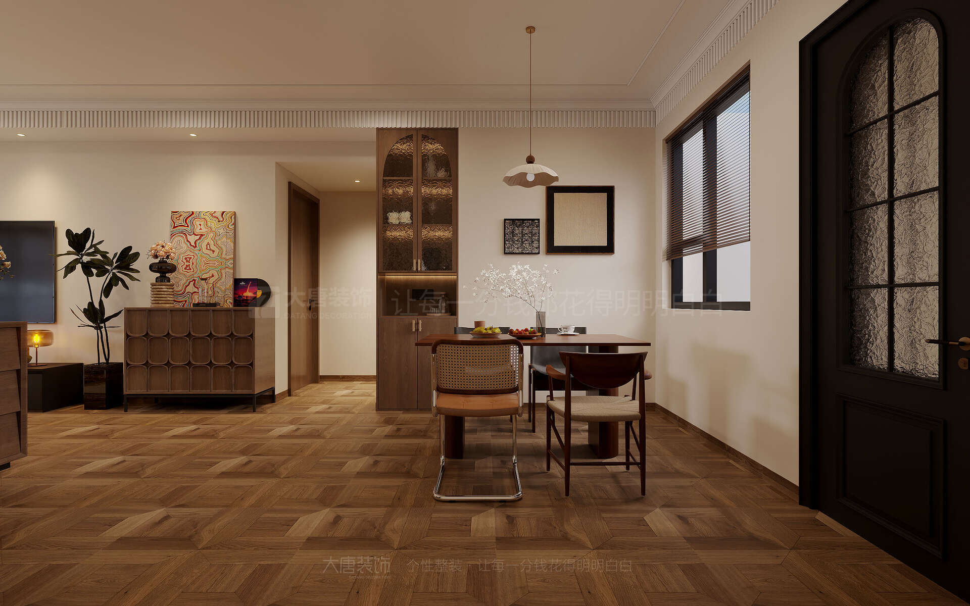 本案是一套复古风装修案例,在设计上,整个空间底色轻和舒缓,近似于“没有颜色”的朴实,而软装选择则偏向混搭,复古等不同气质,以恰当的搭配融合在这个家中,呈现出一个独具特色质感的家居空间。地面选择有怀旧肌理感的木纹砖,增添视觉美感及层次性,通铺全屋加强空间整体感。