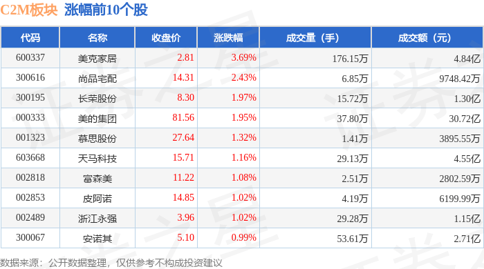 从资金流向上来看,当日C2M板块主力资金净流出5.86亿元,游资资金净流出1.64亿元,散户资金净流入7.5亿元。C2M板块个股资金流向见下表: