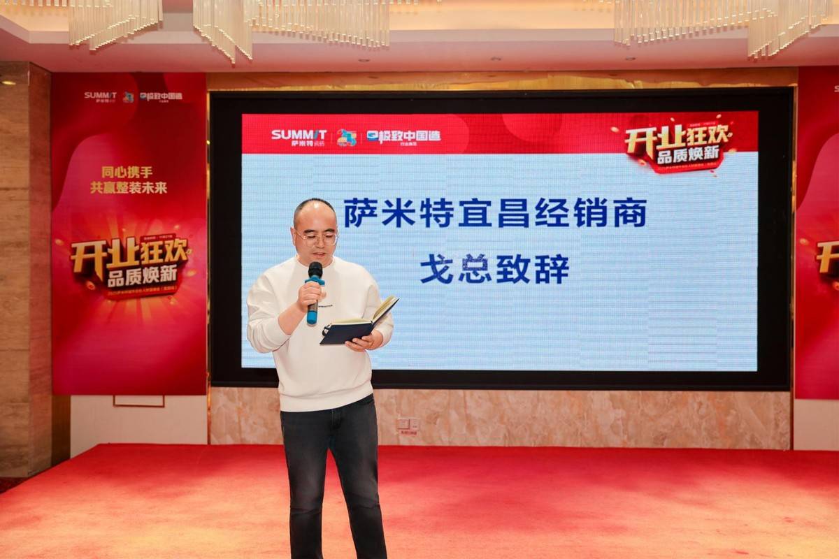 开业狂欢·品质焕新,在2025萨米特瓷砖城市合伙人财富峰会(宜昌站)的活动现场,萨米特瓷砖宜昌总经销戈长城发表致辞并作开业优惠政策解读。