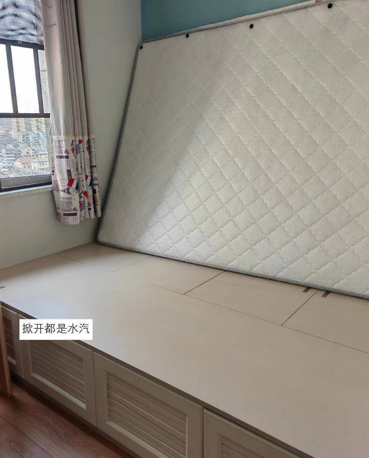 不过更让人头疼的是,由于榻榻米内部通风环境差,湿气容易积聚,常常一觉醒来,床垫下方都湿漉漉的,极大影响了睡眠质量。