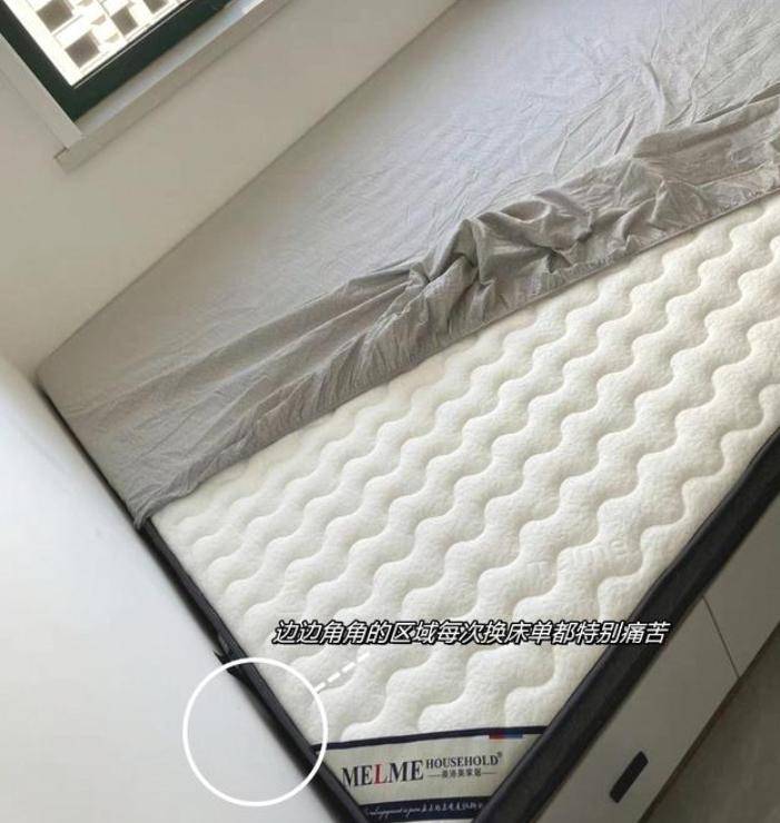 比如更换床单或床笠时,由于四周空间局促,每次都要弯腰、伸手、扭身,费时又费力,手指头都抠得生疼。
