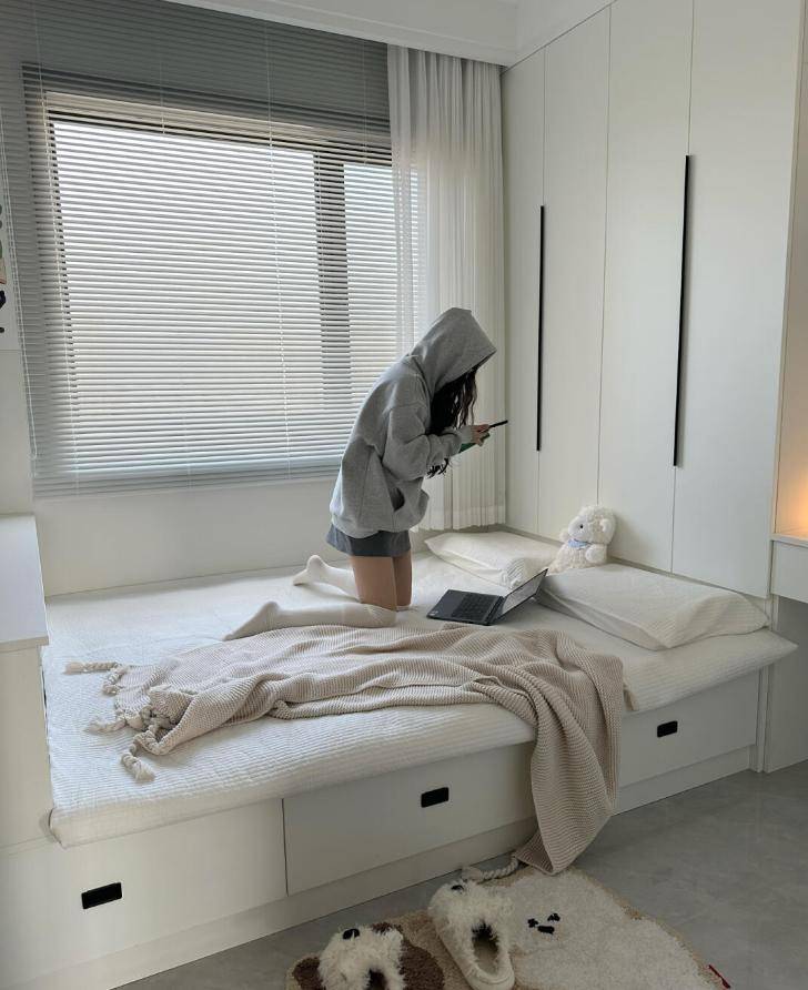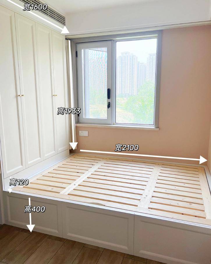 如果不缺那点收纳空间,我更倾向摆放一张成品的平板床,不仅能解决通风差的问题,后期还方便调整布局。