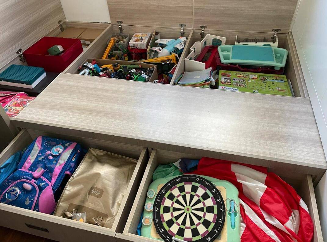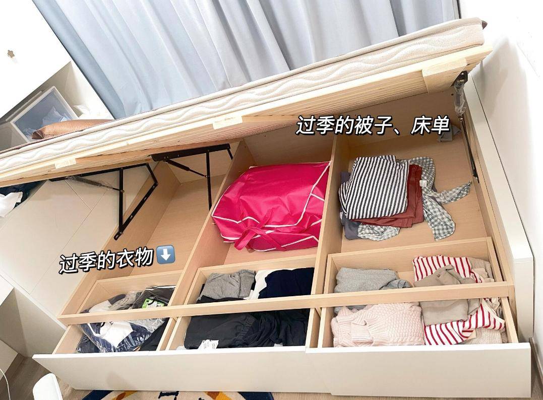 只不过除了侧面的抽屉之外,每次收纳取物时都需要把床垫掀起来才行,效率着实有一点低。