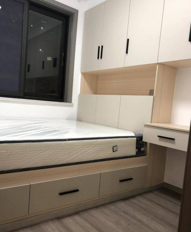 就拿下图中的例子来说,因屋主的疏忽定制了一张厚床垫,铺上去才发现把柜门给挡住了,且由于是定制产品,还不能更换,懊悔不已。