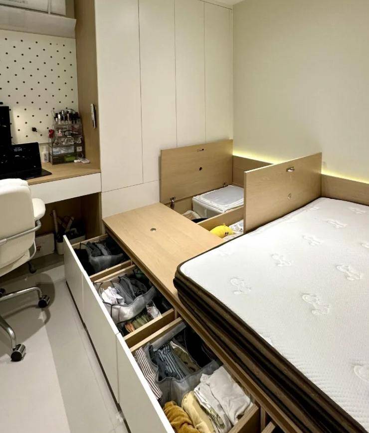 若想解决榻榻米不好收纳的痛点,方法有两个,大家可以结合自己家的情况灵活选择。