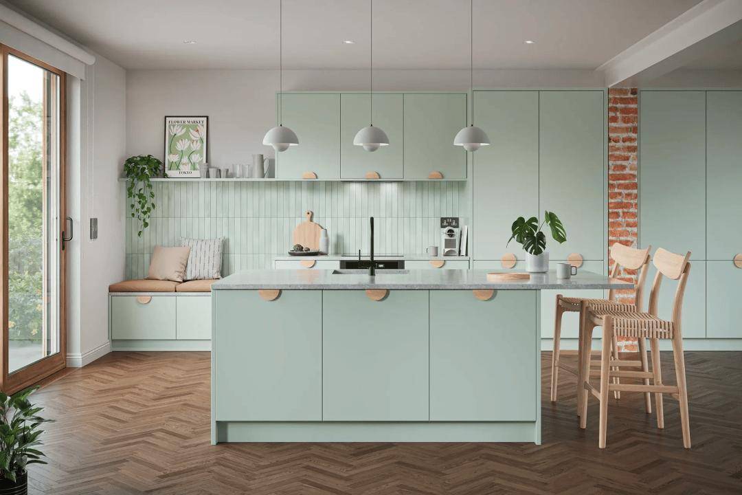 偏爱清新质感?“薄荷绿款”自带治愈滤镜,柔和色调让下厨都变轻松;“木色自然款”以深棕木纹为主,搭配石纹台面,烟火气里藏着松弛感。