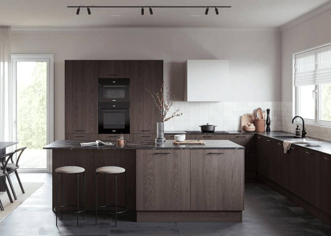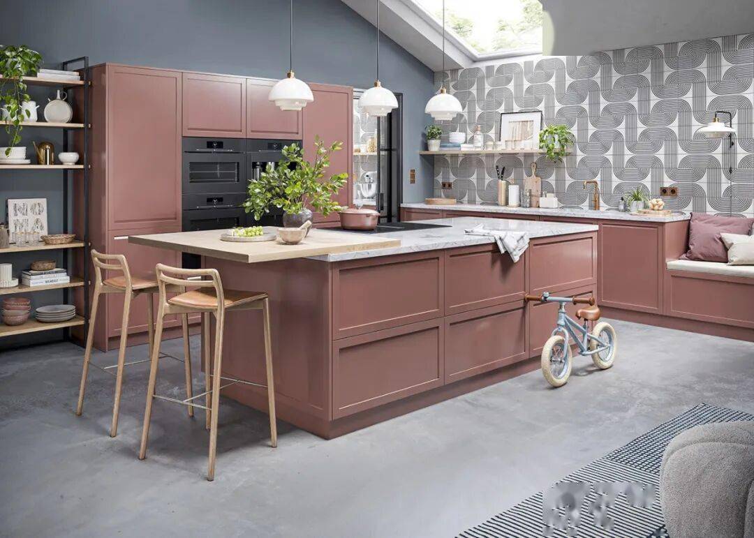想要个性氛围?“勃艮第红款”用复古红柜体配几何瓷砖,高级又热烈;“深海蓝款”+ 波浪墙砖,像把静谧海洋搬进厨房;“全黑酷感款”配玻璃吊柜,冷调中透着精致。