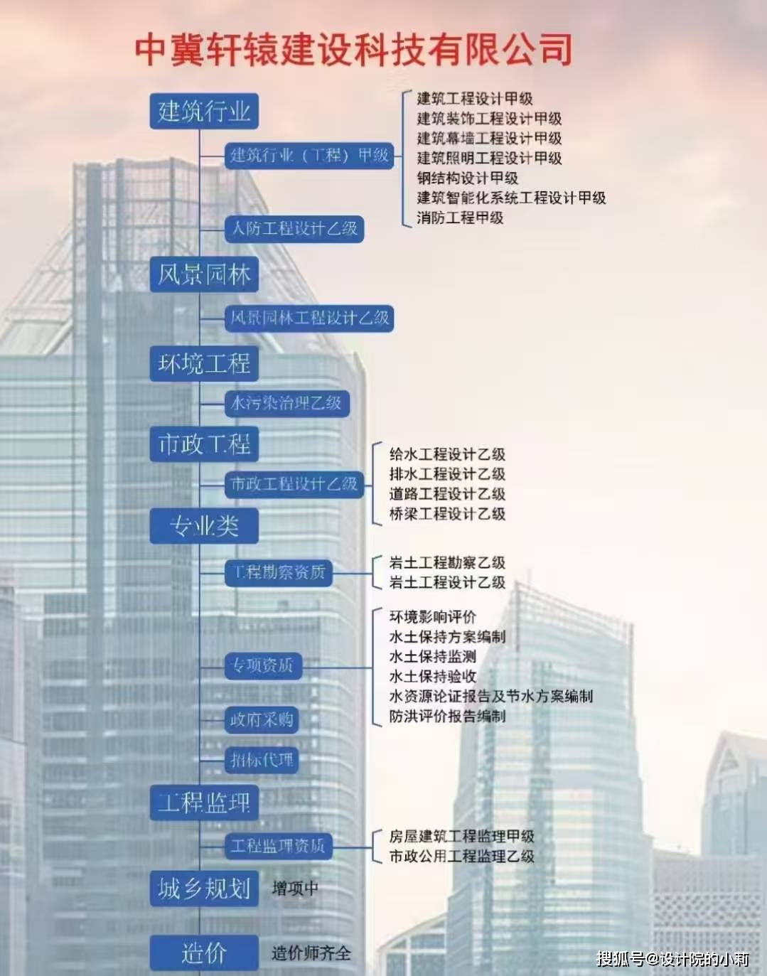 公司现有员工近400人,具备建筑工程设计甲级、市政工程设计、环保工程设计、工程造价咨询企业甲级、工程咨询单位市政公用工程甲级,房建监理甲级等多项资质。主营业务范围涵盖建筑规划、工程设计、市政工程、工程咨询、环保设计、工程勘察设计、工程项目管理、造价咨询、工程招标及代理、工程监理等多个领域,能够为客户提供全方位、高质量的专业服务。中冀轩辕以严谨、诚实、创新、品质、共赢为发展之道,不断提升技术与市场积累,与众多房地产开发集团、工厂企业及地方政府机构达成战略合作,完成了大量工程项目,在城市建设、环保发展、地方市政规划等领域做出了不懈努力,我们期待与客户建立长期友好的合作关系,我们将全力以赴来保证与客户的发展共赢。未来随着市场区域与业务范围的不断拓展,中冀轩辕的品牌实力与行业影响力必将焕发出新的蓬勃生机。