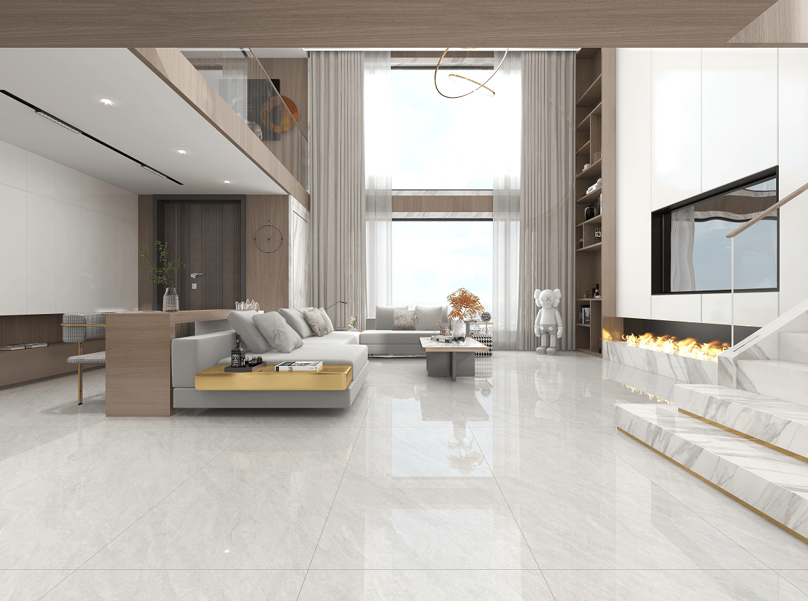 主打“通体大理石瓷砖”“臻白超平釉”“金丝绒”“木纹砖”等系列,规格覆盖400×800mm至900×1800mm,适用于住宅、酒店、办公、公共工程等多类场景。
