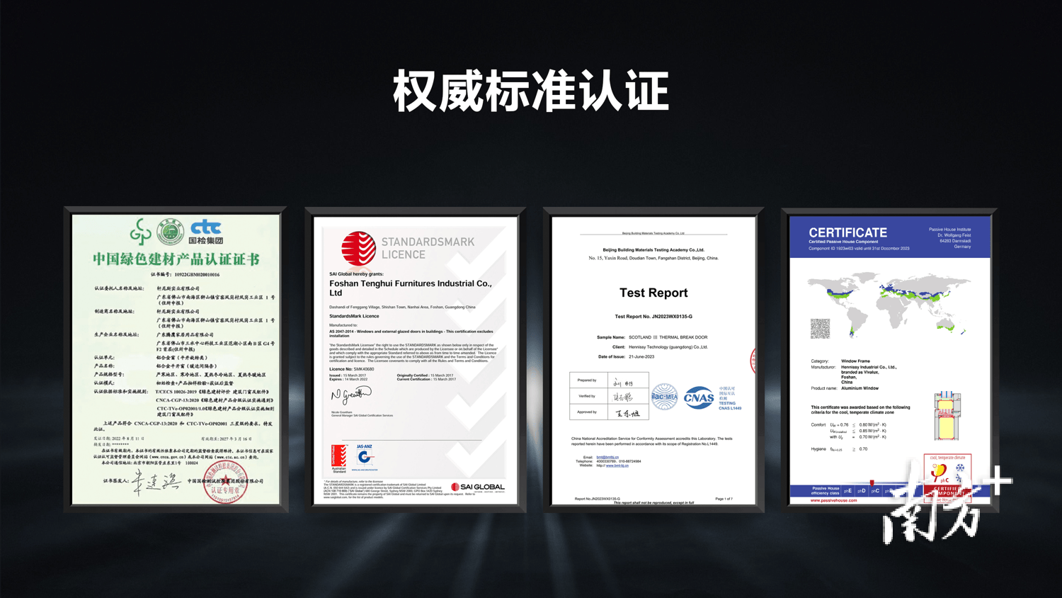 轩尼斯门窗拥有CZC中窗产品认证、欧盟CE 认证、德国被动房研究所PHI、澳洲SAI Gobal等国际权威认证。