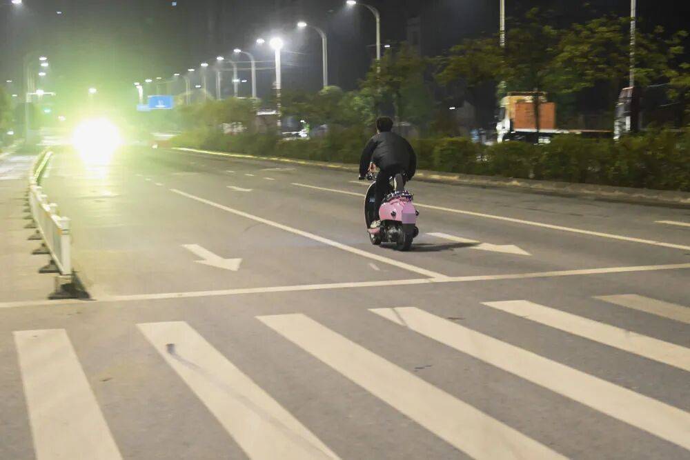 在广西某市街头,一些少年骑着改装过的电动自行车炫技。图源:新华网