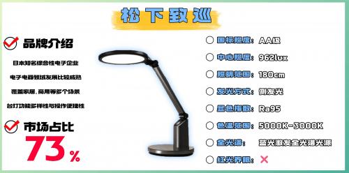 推荐理由:操作比较方便,灯头前方设置了触控区域,可以直接用手指调节亮度和色温。