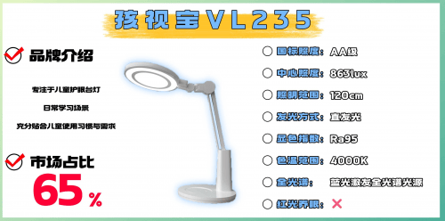 儿童护眼灯排行榜第九名:孩视宝VL235