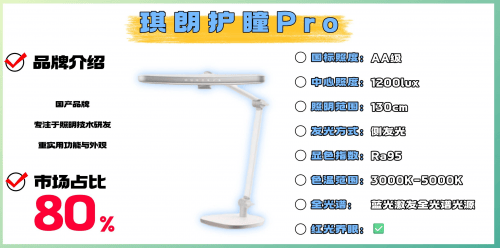 儿童护眼灯排行榜第四名:琪朗护瞳Pro