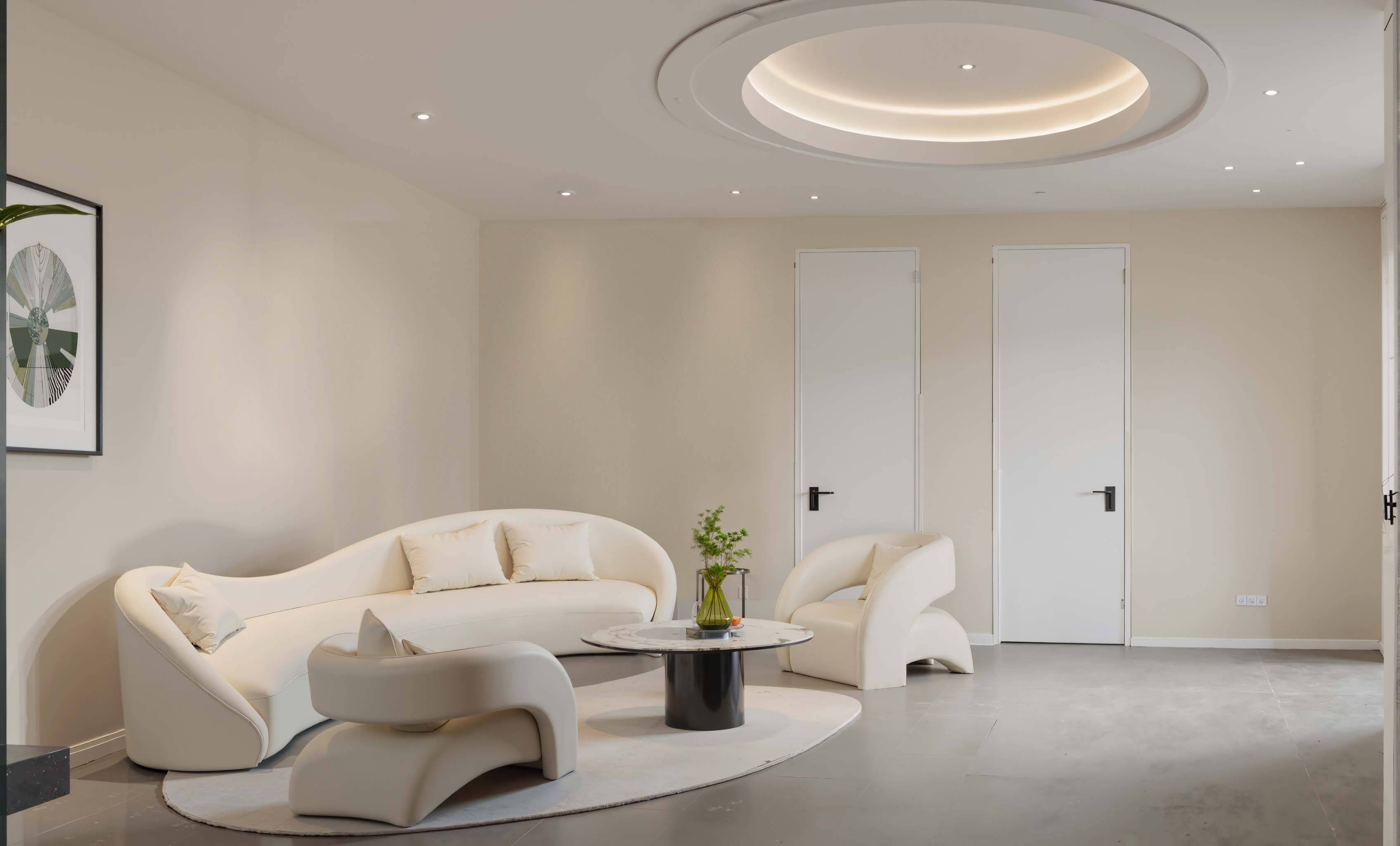空间以“圆”和“弧”为核心设计语言,构建出充满韵律的视觉骨架: